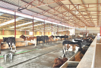 Expansive confines have been created for the cows to roam freely, grazing on lush, green grass. Specific zones are demarcated for calves, pregnant cows, milking cows, and oxen.